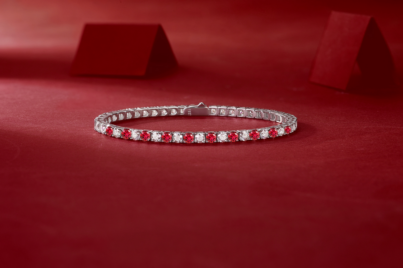 Neptune Red Moissanite Tennis Bracelet - 6.5 inches