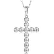 Cross Moissanite Gemstone Pendants Necklace - Silver